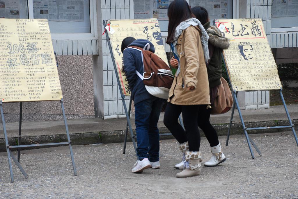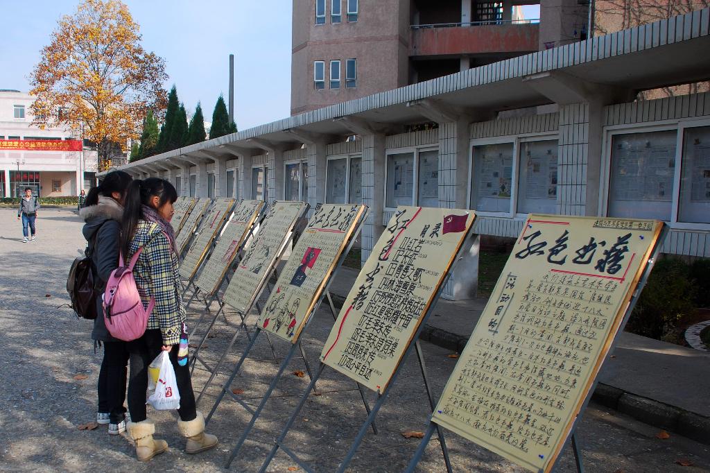 活动初期,支部成员深入我院图书馆调研红色书籍,通过为期一个月的查阅,成员自己又得到了一次红色精神的洗礼。随后支部召开座谈会,学习了十八大精神,交流了此次阅读的心得体会,同时也为全院师生推荐出一百本红色书籍,并逐一注明书籍的索书号和馆藏地址,以便师生查找借阅;成员们还利用休息时间,把推荐出来的书籍用书法、艺术海报的形式先后在学校主干道两旁、图书馆大厅内展现给全院师生,反响很好,老师同学驻足观赏、记录索书号。