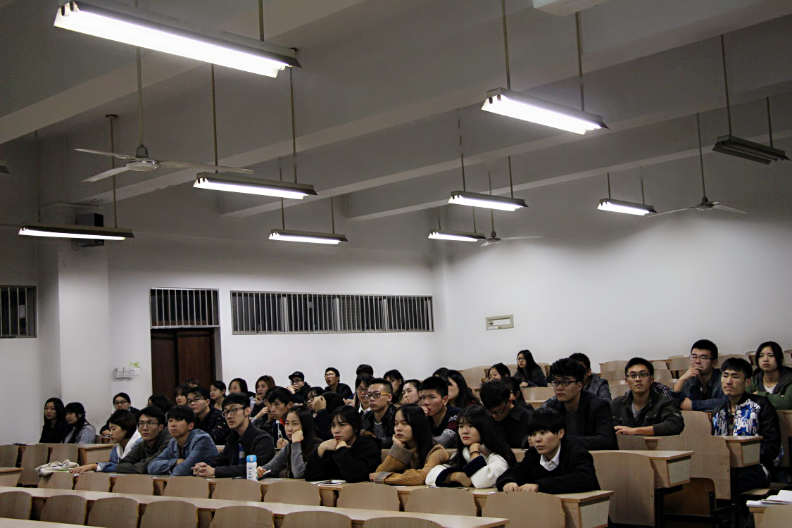 (大四学生认真听讲)