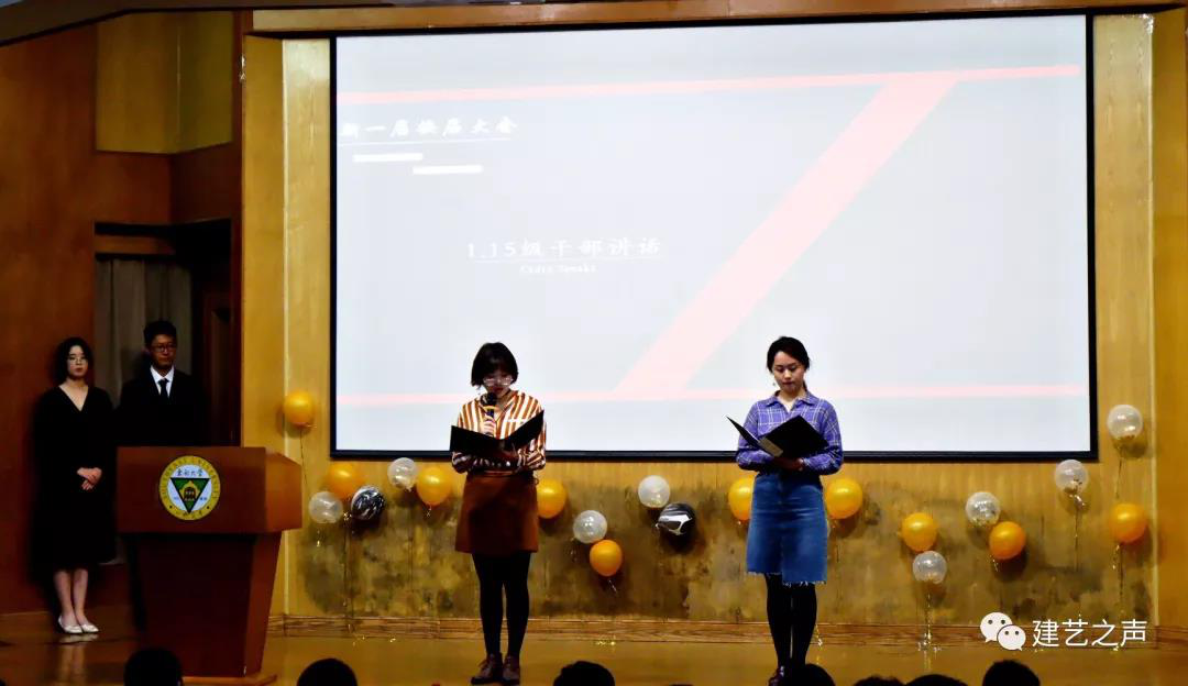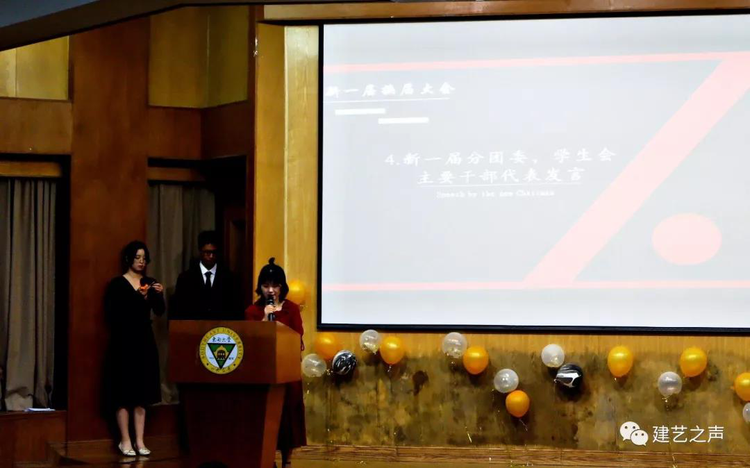 在江晶老师宣读完新一届分团委、学生会主要干部名单后,新老分团委副书记、主席进行了交接仪式,由新任分团委副书记姜梓芮代表新一届学生干部进行讲话。