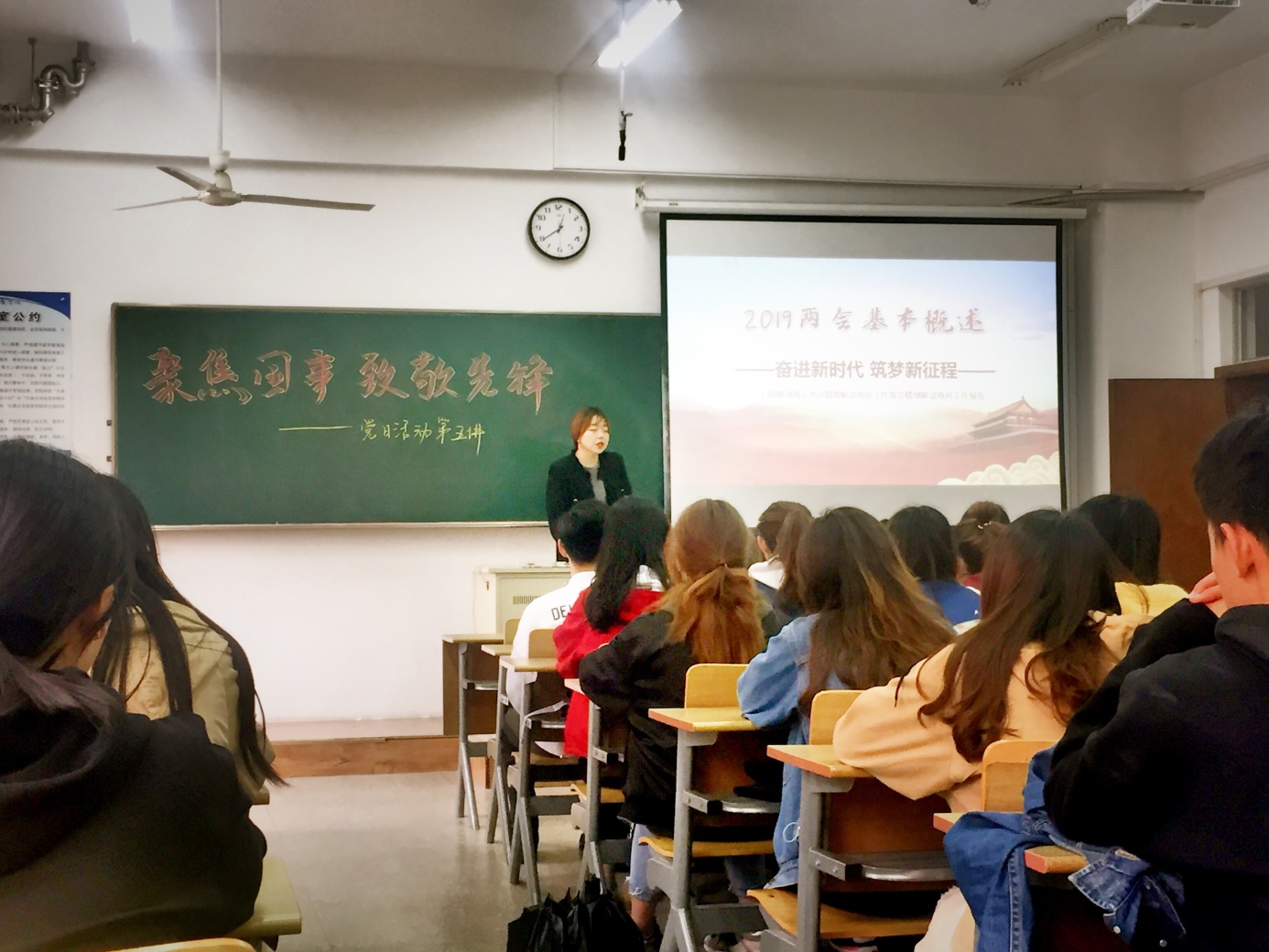 4月26日中午12时30分,kaiyun官方网站入口在电子电工实验大楼515开展了“不忘初心跟党走,牢记使命学担当”——聚焦国事,致敬先锋系列党日活动第五讲。我院学生第二党支部书记江晶老师作为主讲人带领全体入党积极分子一起学习了全国两会精神。
