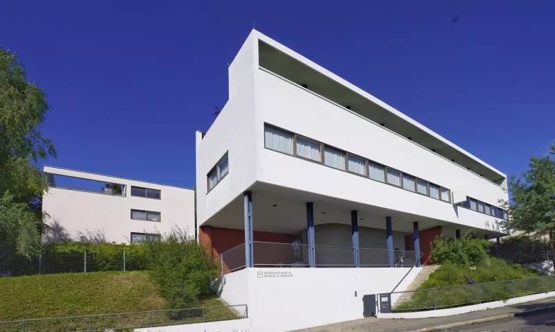 又譬如另外近二十位现代建筑设计师在德国斯图加特搞了一次威森霍夫住宅展销,住宅展销是在密斯·凡·德·罗和勒·柯布西耶的组织下进行。建筑的造型很现代,一组白色的别墅,错落有致,像巨大的现代雕塑群。落成后的住宅室内空间灵动,光线充足。但作为商品房,由于过分简洁,缺乏生活感,有些别墅难以销售。