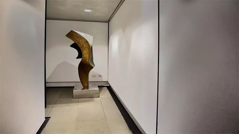 空间的节点指空间的突显部位,包括放大部位、缩小部位、高出部位、下沉部位等。空间的节点处通常是空间构成趣味中心的部位,在这种部位放置陈设品可以在空间更加突出主体,使视觉取得张弛有度的效果。如能将各节点部位的陈设品形态统一则是构成室内母题语言的极好方法。如图 3.2.30 陈设品布置在空间节点处 a b ,如图 3.2.31 a 雕塑展厅的空间节点处布置的雕塑陈设成为视觉中心。