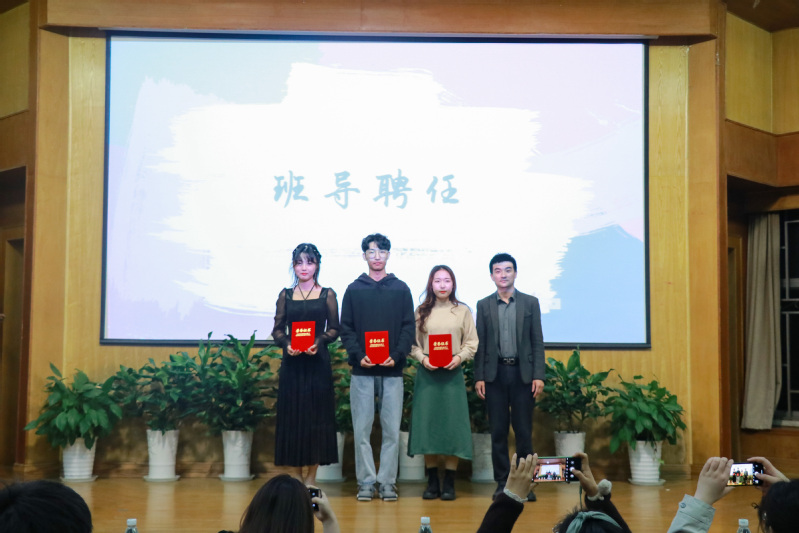 活动开始,邵叶鑫老师表达了对新生们的殷切希望并为2020级新生班导和2019级优秀学生干事颁发聘书与奖状。邵书记分别围绕“当前全球疫情、大学生自我管理意识及重要性、践行“四心”、彰显青年担当”四个方面,向新生们分享自身的经历,提出中肯的建议。