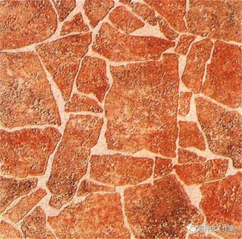 常见彩釉砖品种有仿古砖(图 3-2-4)、渗花砖、金属光泽彩釉砖等,可用于各类建筑的室内外墙面及地面装饰。