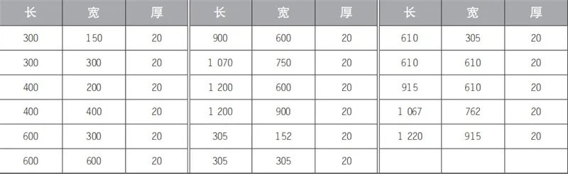 常用微晶石板材的规格(mm)主要有: