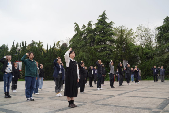 在宣誓仪式中,学生党员薛淇文带领全体党员面对鲜红的党旗,高举右手握拳庄严宣誓,铮铮誓言在革命烈士纪念碑广场上空久久回荡。学生新党员代表徐文清在发言中提出今后要把入党誓词终生铭记,身体力行,向更高水准看齐,用实际行动履行誓言。