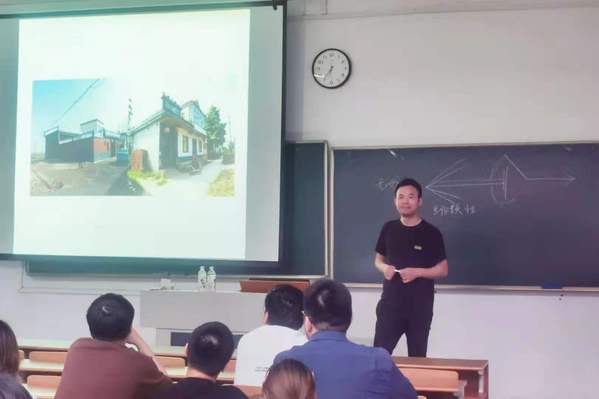 讲座伊始,王海老师开门见山地告诉同学们作为设计师应该具有的精神、思想以及思维方式。随后他与同学们讨论了什么是设计的力量。在同学们积极表达了自己的想法后,王海老师分享了自己对于这个问题的见解。他认为仅靠书面的理论讲解是不够的,所以他通过给同学们介绍他的获奖项目——中联重科智慧产业城,带领同学们走进艺术之美。王海老师说:“对艺术要心怀敬畏。没有美感的作品不叫设计。”