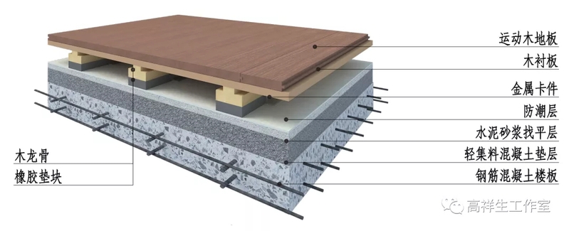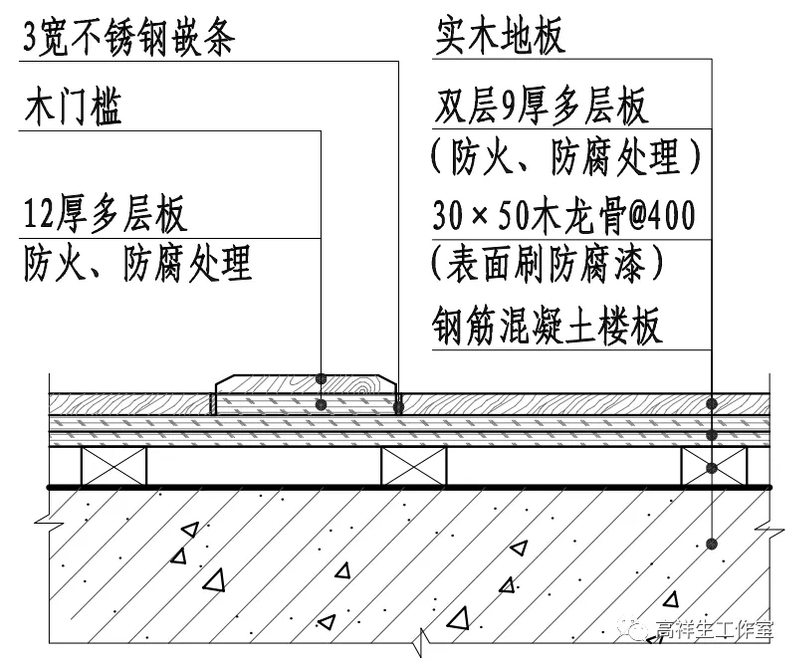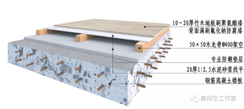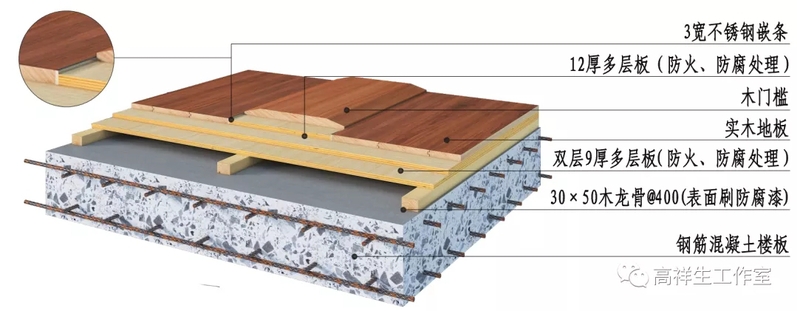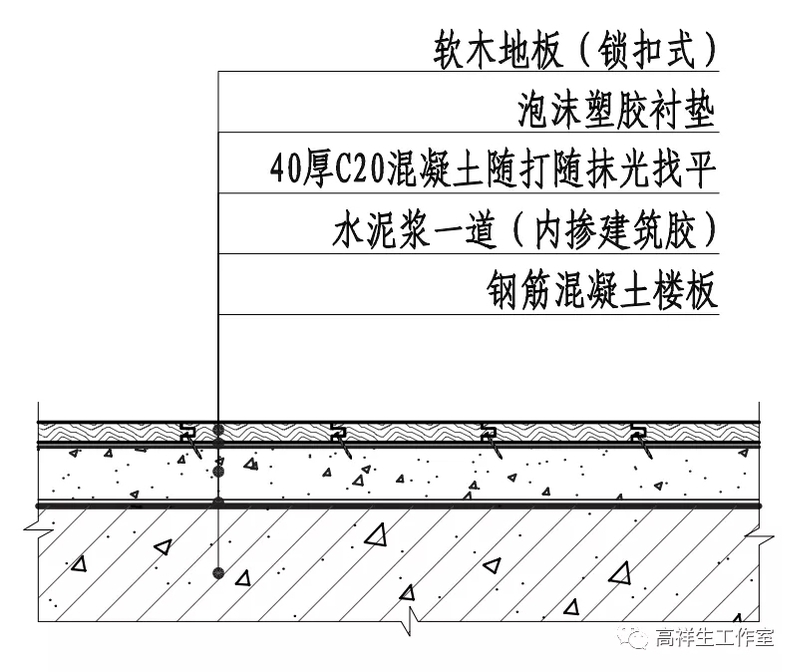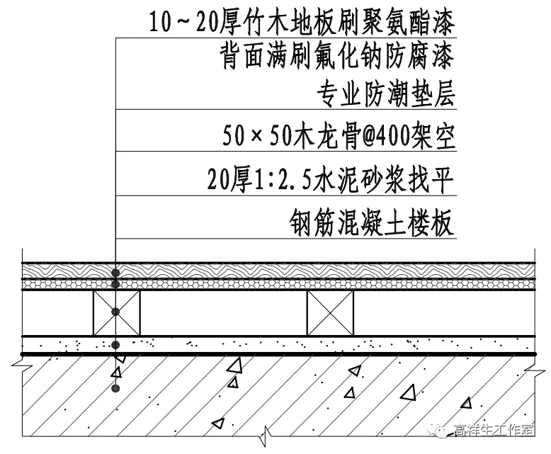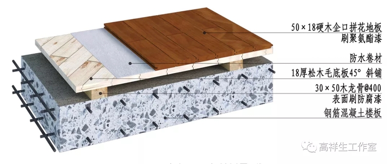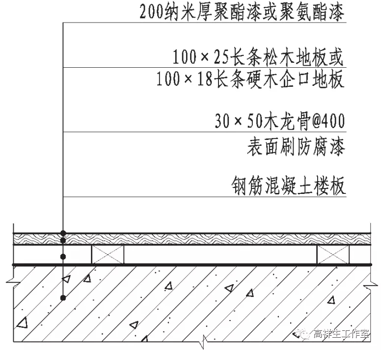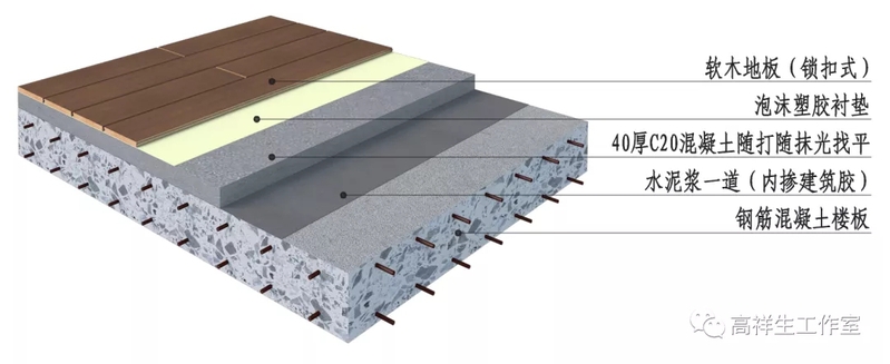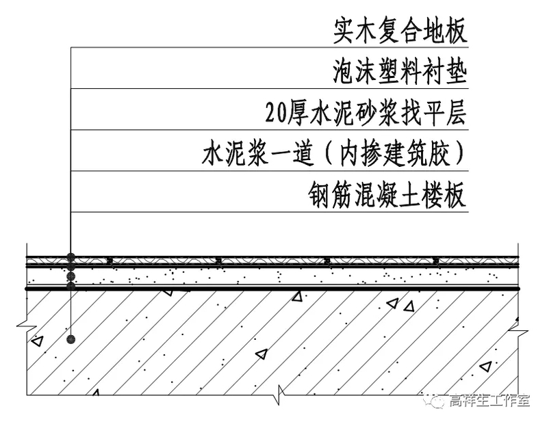 图 12-4-20 平铺强化地板地面构造节点图(松木毛地板)