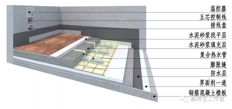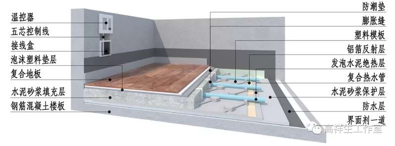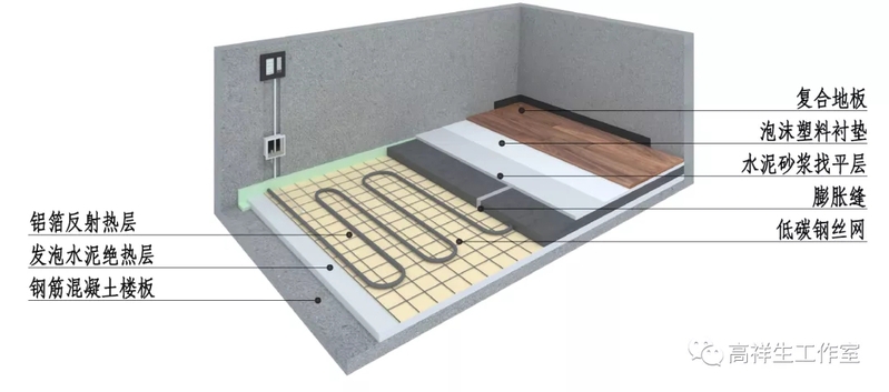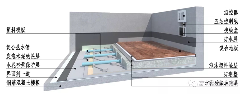 图 12-9-5 复合地板水暖地面三维图(发泡水泥绝热层)方向一