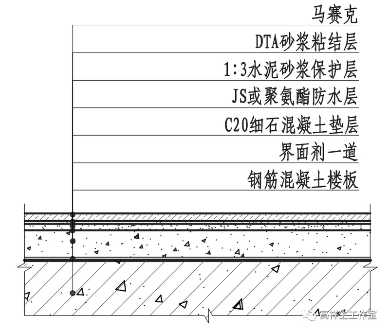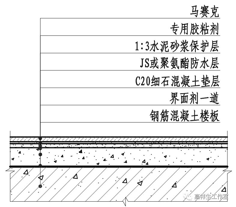 图 12-2-11 马赛克地面构造节点图(砂浆粘接层)
