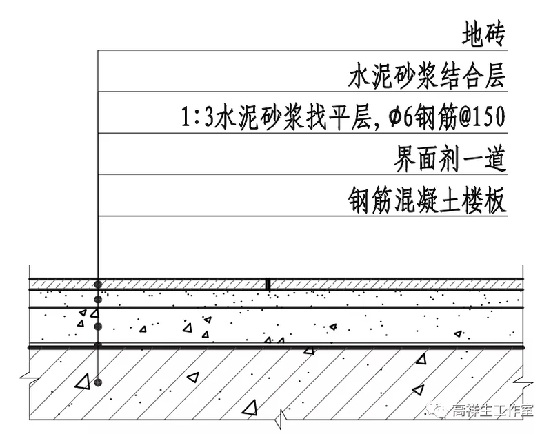 图 12-2-3 地砖地面构造节点图(基层薄)