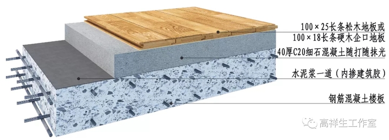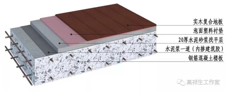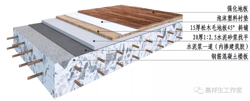 图 12-4-17 平铺强化地板地面三维图(水泥砂浆找平)