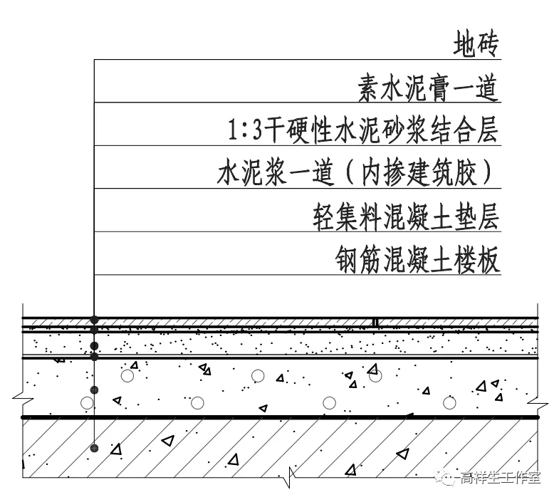 图 12-2-8 轻集料垫层地砖地面构造节点图(素水泥膏)