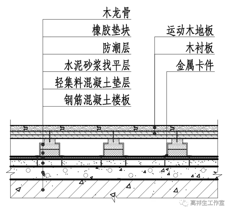 图 12-4-7 架空单层硬木地板地面构造节点图