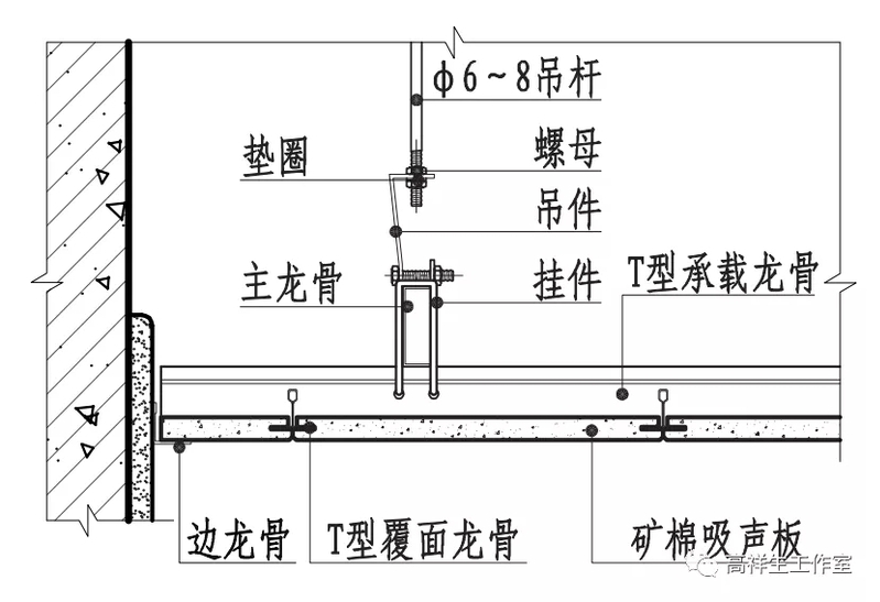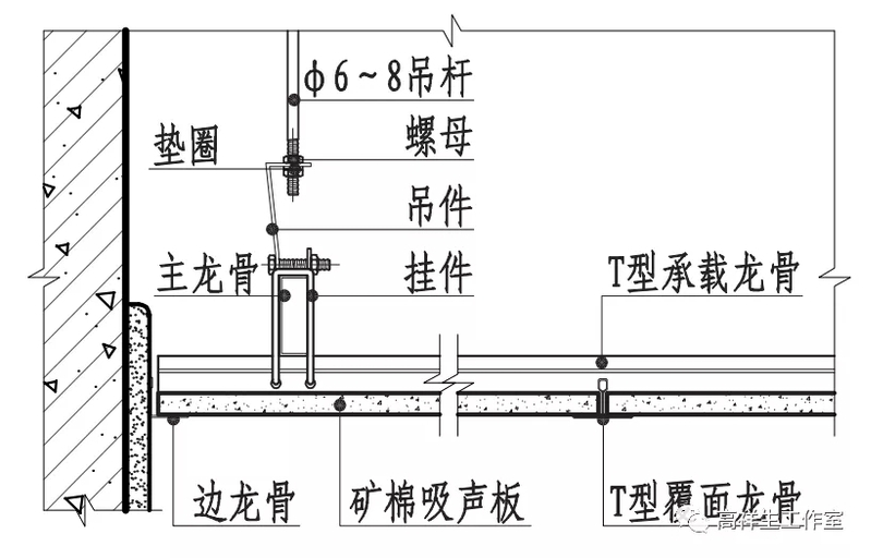图 13-2-7 T 型双层骨架顶棚构造节点图(一)