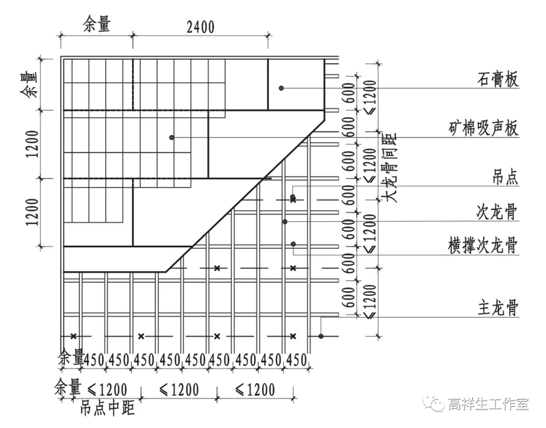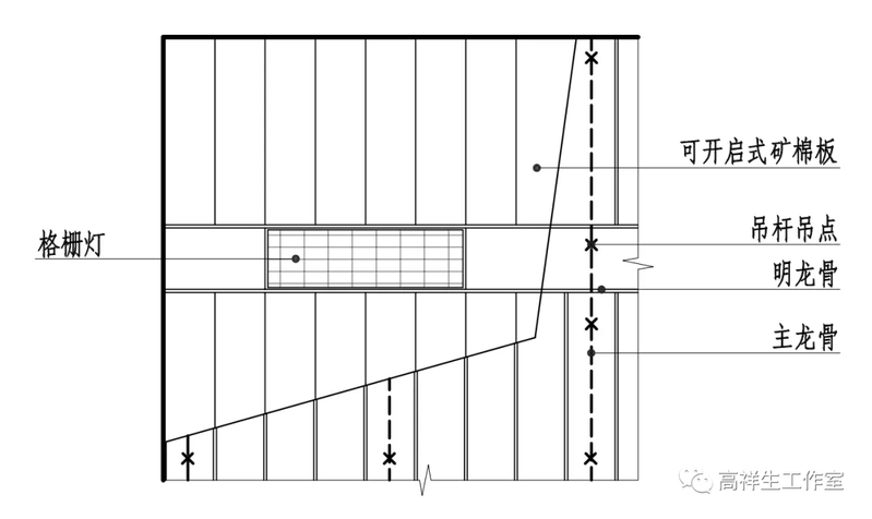 图 13-2-22 暗明龙骨结合矿棉板顶棚平面图