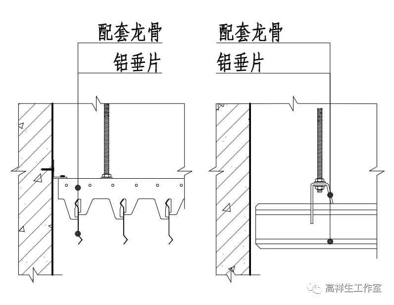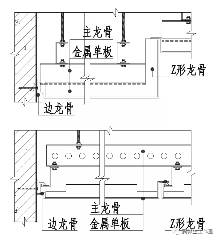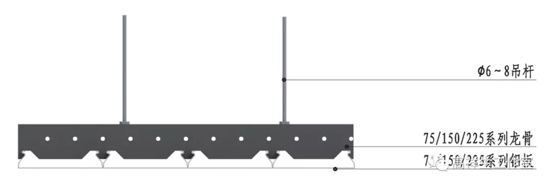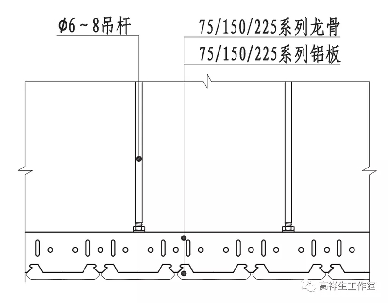 图 13-3-8 条形铝扣板顶棚(一)构造节点图
