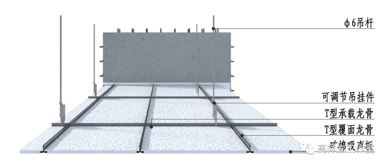 图 13-2-21 暗明龙骨结合矿棉板顶棚三维图