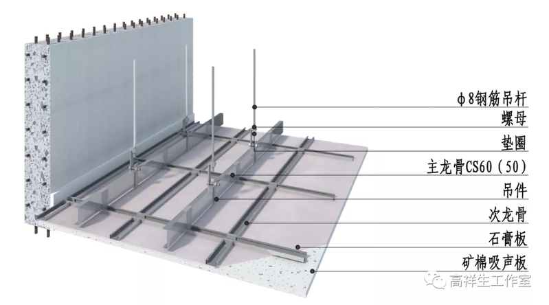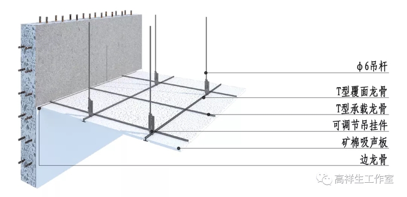 图 13-2-25 复合粘贴矿棉板顶棚三维图