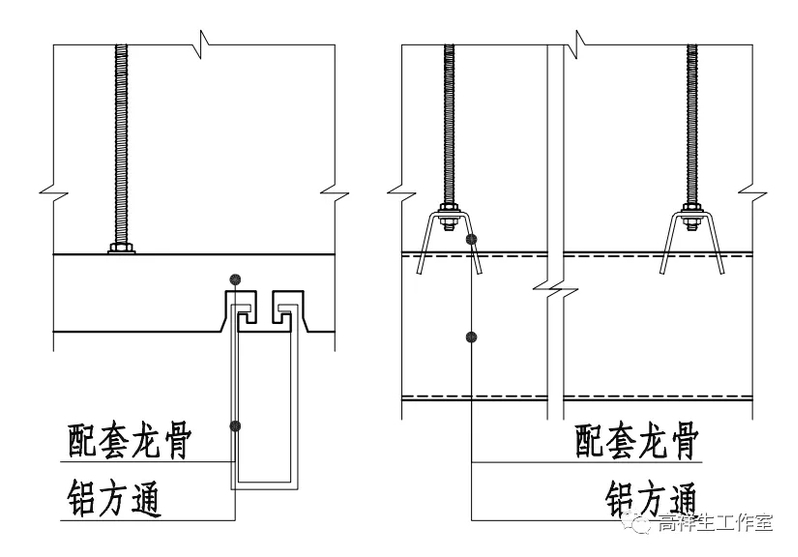图 13-3-7 明架方形铝扣板顶棚构造节点图
