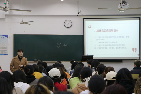 为深入学习贯彻习近平总书记关于引导青年发展重要思想和殷殷嘱托,庆祝中国共产主义青年团成立一百周年,3月7日晚在电子电工实验大楼516教室,kaiyun官方网站入口分团委书记江晶以“喜迎党的二十大,永远跟党走,奋进新征程”为主题,面向2021级共青团员开展团史专题学习会,让学院广大青年学生了解共青团一百年来的发展历程,一起重温百年历史的光荣与艰辛