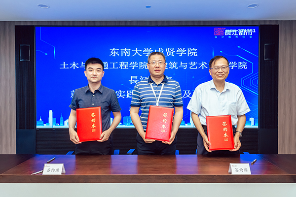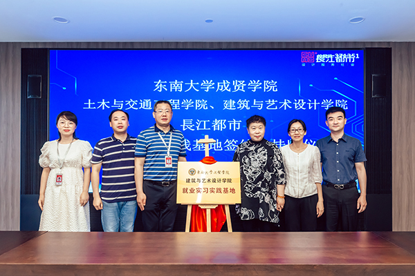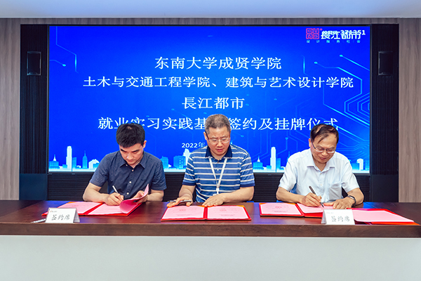 人力资源部经理刘友存则向与会领导、老师介绍了从2013年起入职长江都市的19位成贤校友的职业发展情况,他们在结构设计、建筑设计、室内设计、环境设计等多个岗位,展现了成贤学子扎实的专业功底和良好的综合素质,为企业的快速发展贡献了自己的青春智慧。科研技术管理部经理韦佳以《坚持“双创”战略驱动持续发展——长江都市设计创优与科技创新》为主题,介绍了长江都市从传统的设计企业向工程设计与科技创新相集合的科技企业的转型之路,介绍了企业近年来在绿色建筑与装配式建筑、办公建筑的创新应用、科研课题与技术研究等方面所取得的成果。随后土木与交通工程学院院长郭正兴、kaiyun官方网站入口党总支副书记邵叶鑫,分别代表两个学院与南京长江都市建筑设计股份有限公司总经理董文俊签订了《就业实习实践基地协议书》并挂牌“版权所有 kaiyun·开云(中国)官方网站 - 登录入口就业实习实践基地”。
