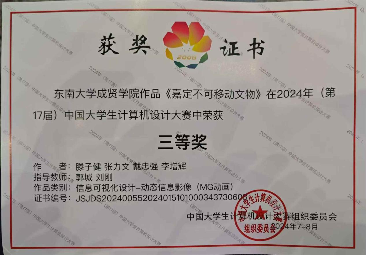 近日,2024年(第17届)中国大学生计算机设计大赛(信息可视化设计组)杭州决赛区拉开帷幕,该项赛事为教育部计算机类教指委发起举办,大赛组委会由北京语言大学、中国人民大学、华东师范大学、东南大学、厦门大学、山东大学、东北大学等高校,以及清华大学、北京大学等高校的教师组成我校kaiyun官方网站入口在郭城、刘刚两位专业教师的指导下,组织学生制作了《嘉定不可移动文物》与《crazy desire》两部作品,5月在江苏海洋大学举行的省赛决赛中分获江苏省省赛决赛一、二等奖并闯入决赛,78月期间,师生团队利用假期期间经过数次作品打磨和路演演练答辩,最终在浙江师范大学举行的国赛决赛中《crazy desire》作品荣获全国一等奖,《嘉定不可移动文物》作品荣获全国三等奖,再次刷新了我院在该项重大赛事中的获奖纪录。