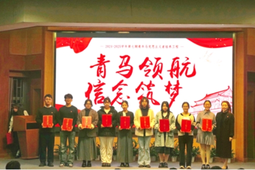 随后进行班导聘任仪式,学院综合办主任徐曼老师为2024级班导颁发聘书。在2024级青马学员初入大学感到懵懂的时候,陪伴大家的不仅有指引大方向的辅导员们,还有在各个方面与大家深入交流的班导们。2022级姜子宜、王栋、季姝琳、江星毅、姜可心、张斯羽、刘阳、钱宇晴、唐亦婷、晏艺文用激情与担当,为各自指导的班级做出实质性贡献。