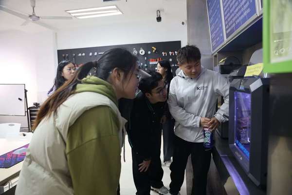 理论讲解后,徐总监现场演示了熔融沉积成型(FDM)技术的操作流程——从建模切片到喷头加热、逐层打印。看到塑料丝在高温下精准“编织”成模型,同学们跃跃欲试。在“理论+实践”的创造中,师生们近距离触摸到3D打印技术的核心,深刻体会到“设计自由化、制造智能化”的科技趋势。