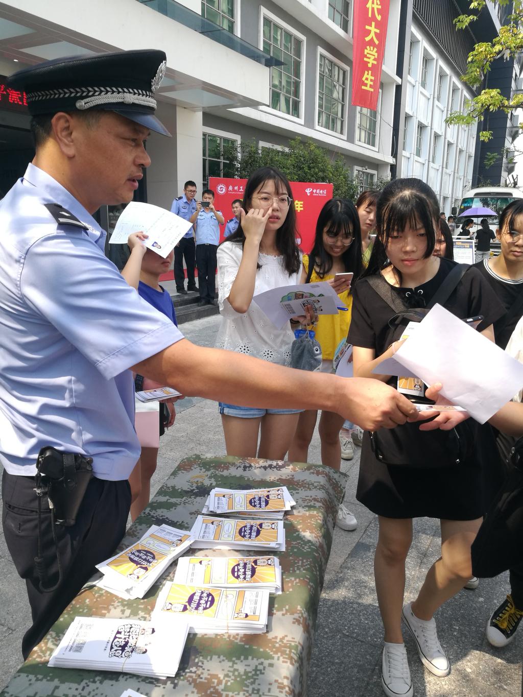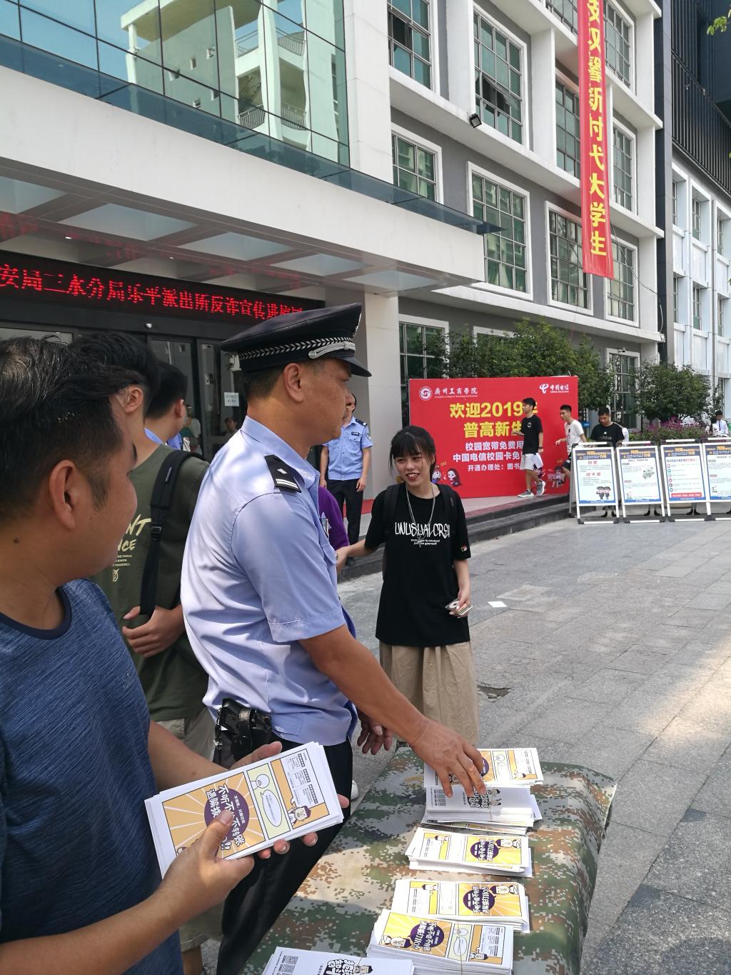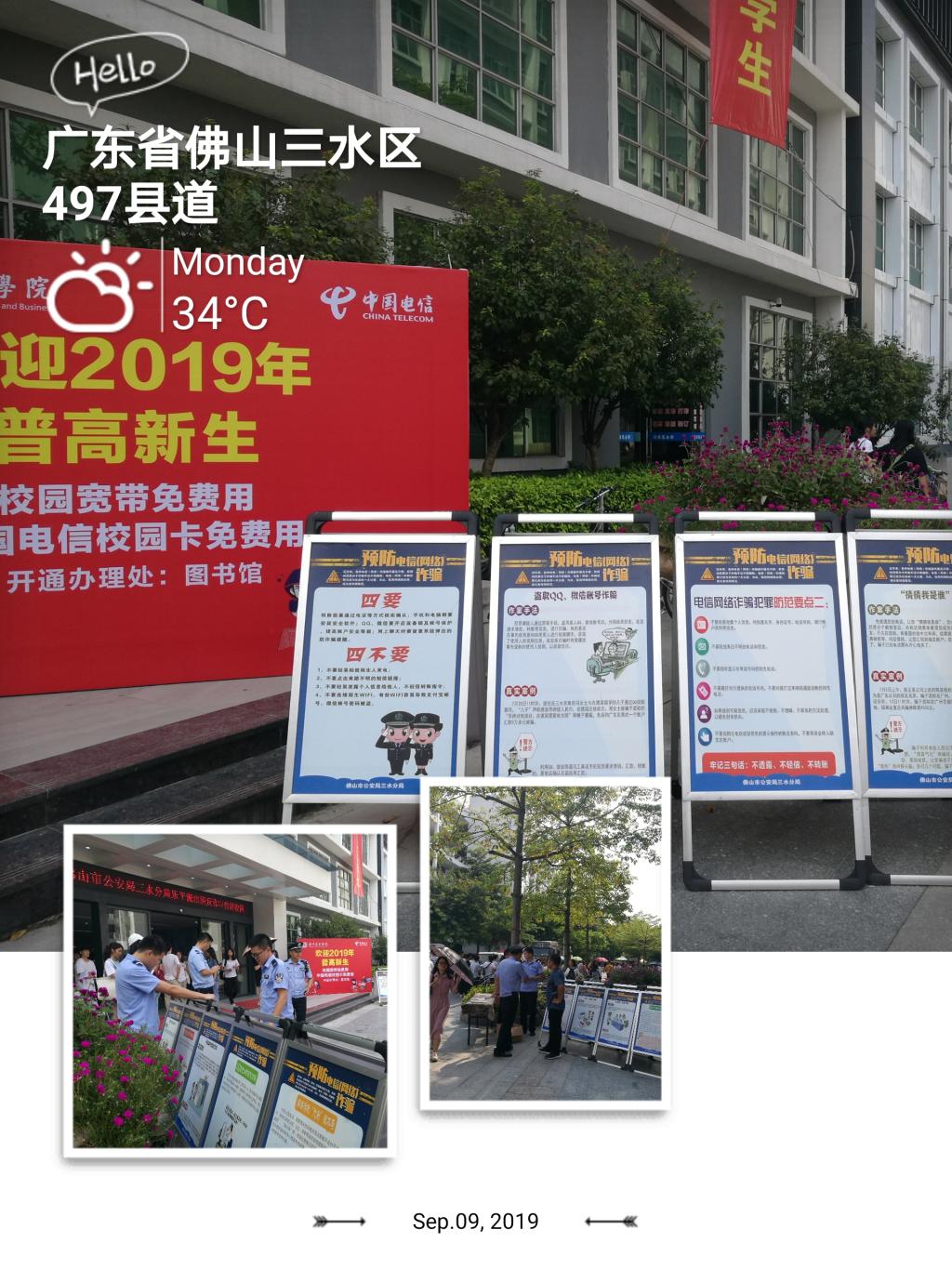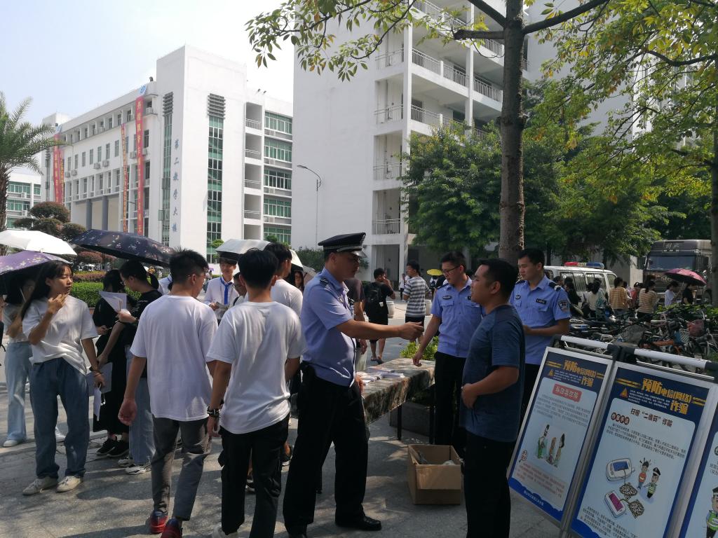9月9日,我院保卫处携手佛山市公安分局乐平派出所在三水校区开展了新学期以来的第五场“反诈宣传进校园”活动。
