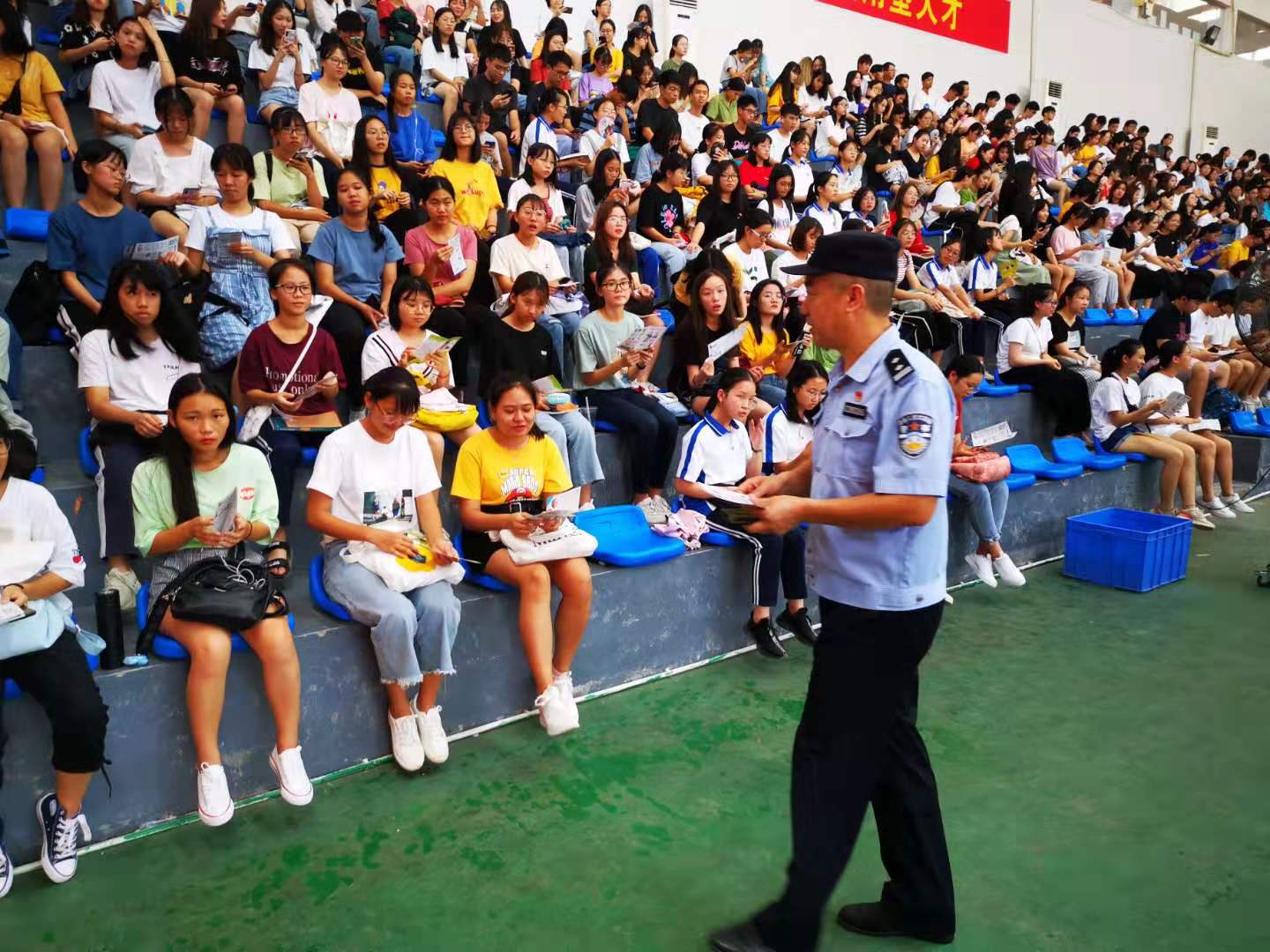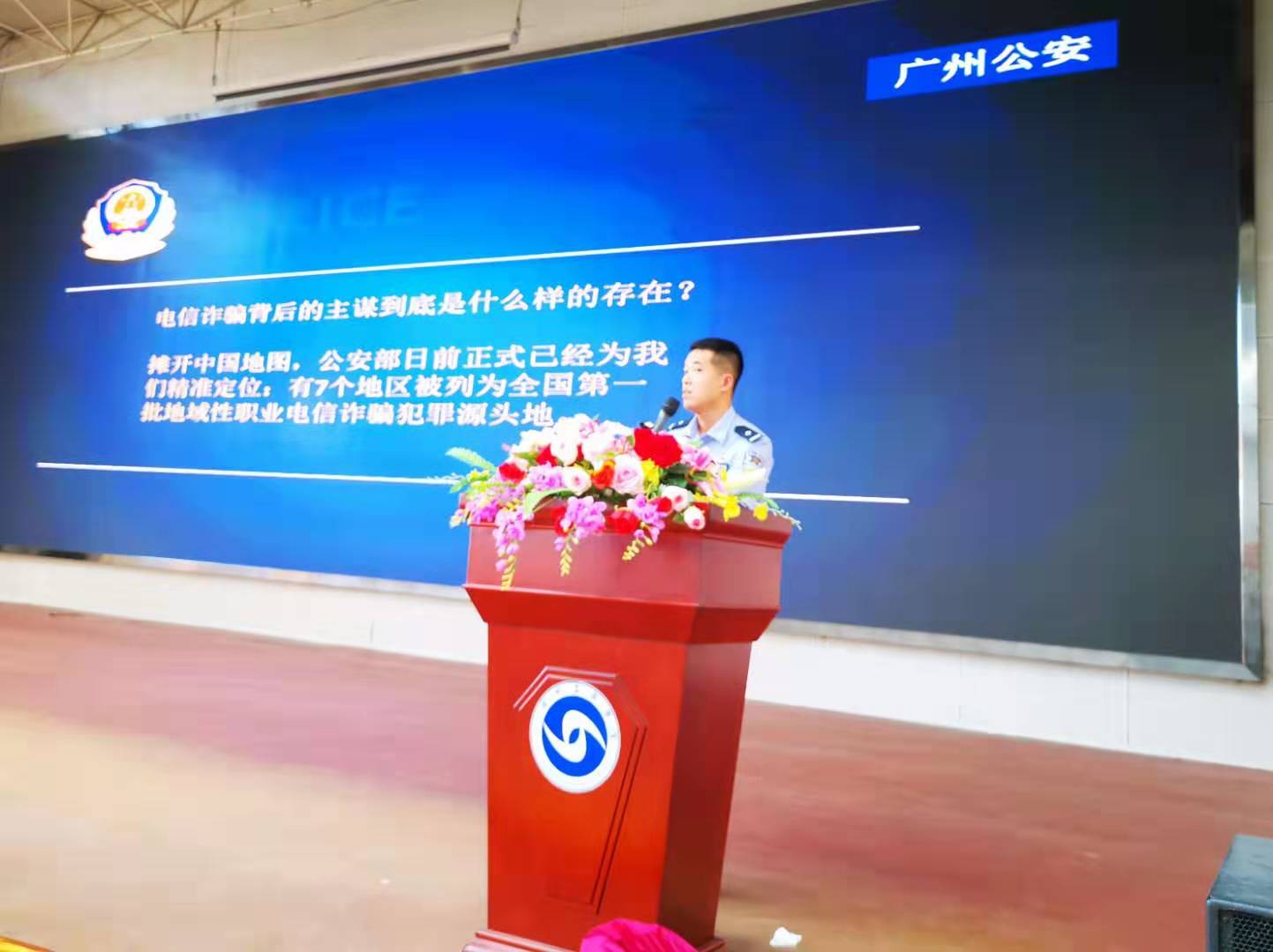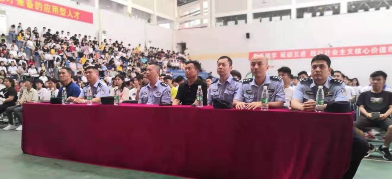为进一步提升我院大学生防诈骗意识,增强防范网络诈骗能力,2019年9月19日,beat365在线体育官网登录入口与花都区公安分局合益派出所联合在花都校区体育馆举办了一场防诈骗教育讲座,学院综治办张主任、广州市公安局驻合益派出所督导曾德亮警官、合益派出所周界副所长、尹劲松等十余名警官出席了活动。活动由保卫处治安科刘书孝科长主持,学院、花城技工学校、学院校卫队共1100多人参加。