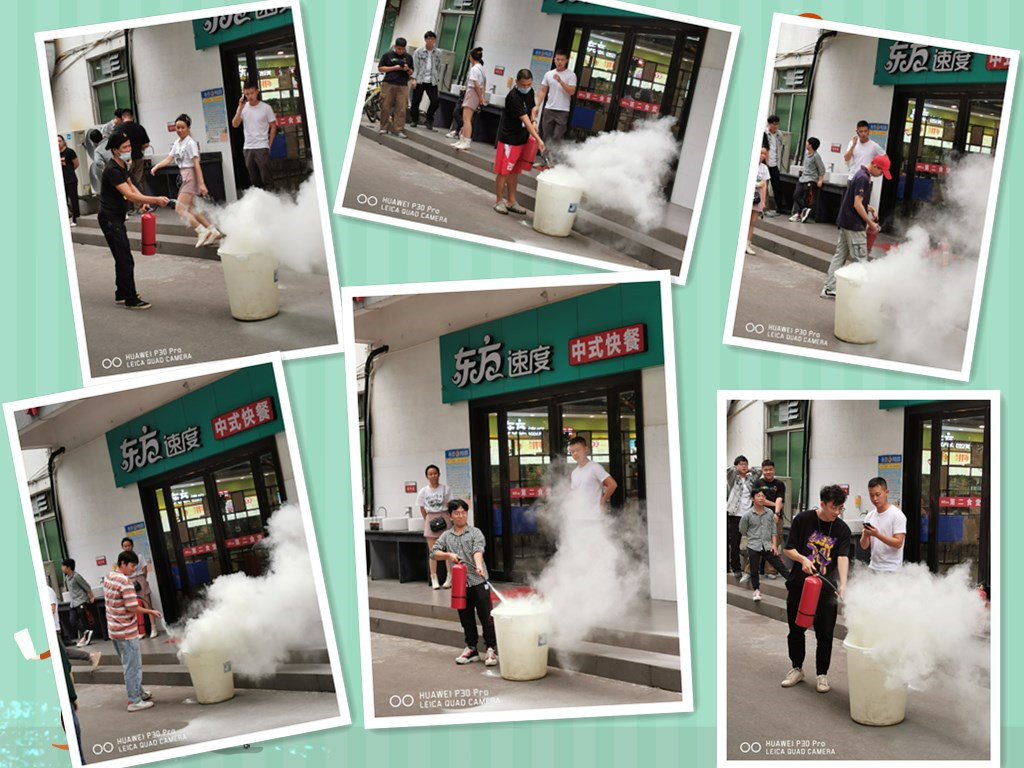 何鑫重点给参加培训的档口责任人讲解了食堂员工对于预防火灾应该具备的四个能力,然后给他们示范干粉灭火器的操作和使用,最后让员工们进行实际操作练习。