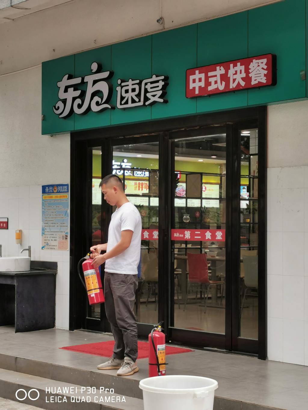 继10月23日对三水校区第一食堂员工进行了消防培训之后,10月28日下午,保卫处三水校区消防专员何鑫又对第二食堂34个档口的责任人进行了一场消防培训。