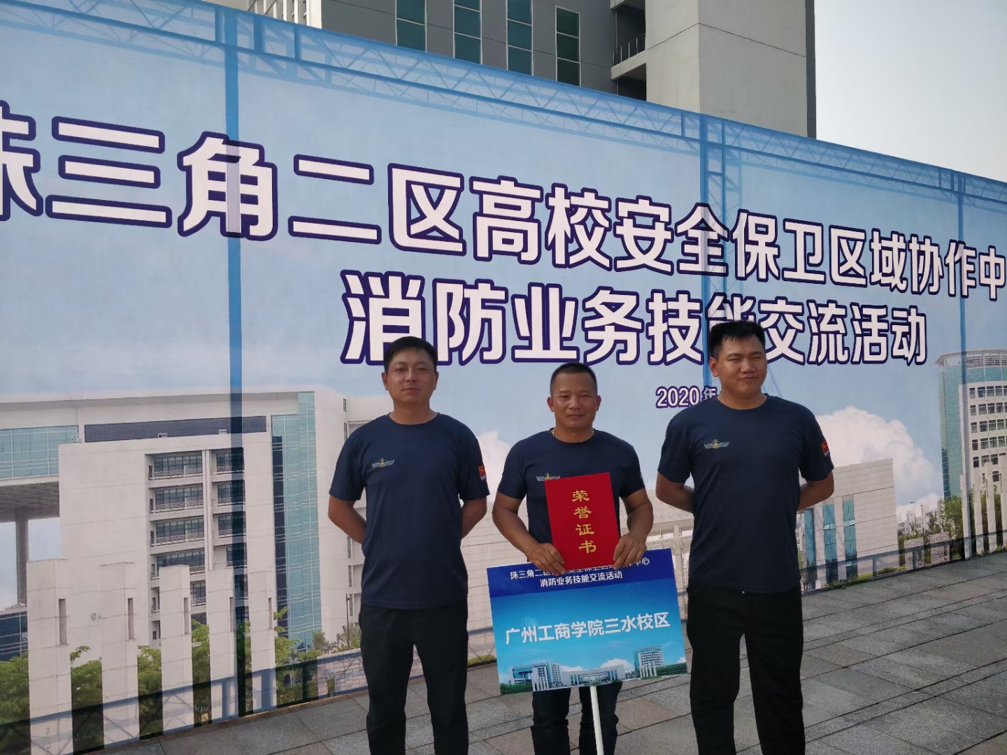 11月20日,由何鑫带队、我院三水校区卢恩明、陈小路、赖登辉三名校卫队员组成的代表队,参加了“珠三角二区高校消防业务技能比武”,取得了集体三等奖,在32支代表队中总排名第10的好成绩。