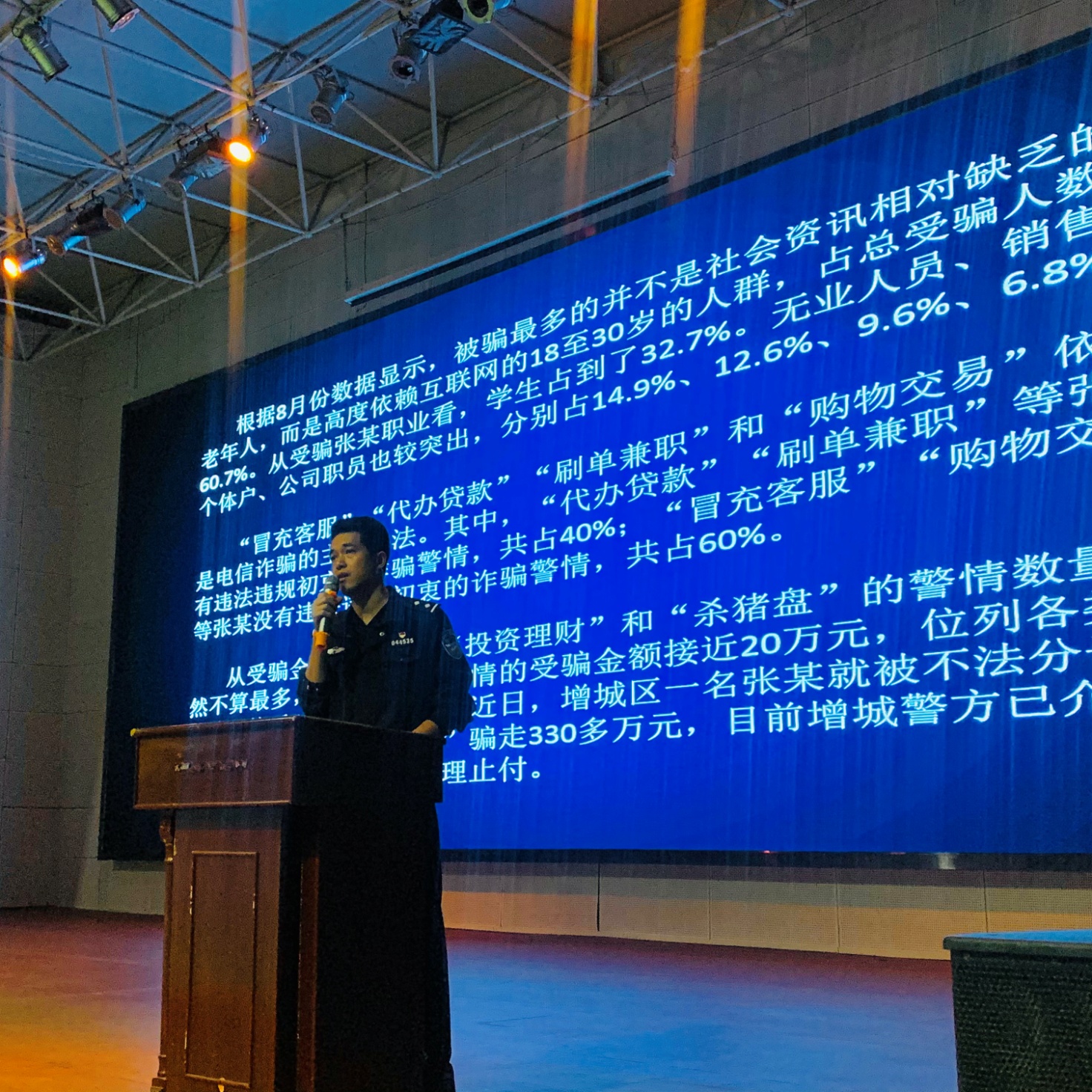 岑警官在分享时指出,电信诈骗的危害不仅造成受害人财物的损失,还会影响到受害者的心理健康,要从思想上正确认识电信诈骗的作案手法和危害,才能从根源上杜绝诈骗案件的发生。岑警官提醒同学们如果接到来历不明的电话和信息,最好就是不要理会;如果不幸上当受骗,一定要第一时间向老师、社区民警寻求帮助,以最大限度减少损失。