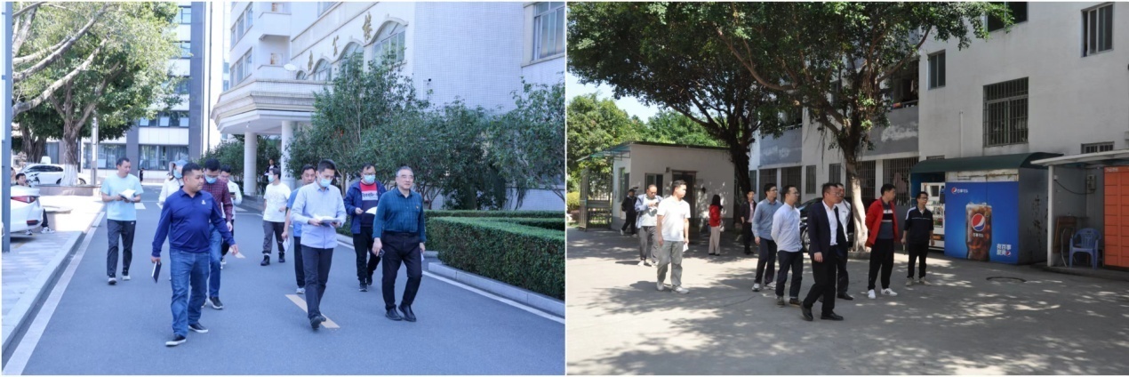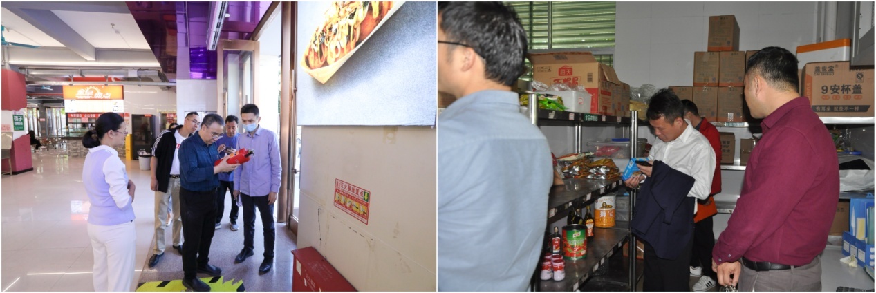 三水校区,学校朱特威副校长带队对三水校区第二实验楼、厚德广场、学生公寓、第四饭堂、建设工地、商业街等场所可能存在的隐患进行了周密排查,对公共设施损坏可能出现意外隐患的情况、垃圾房清理不彻底容易出现卫生安全隐患的情况、厨房区域杂乱食品临期可能出现食品安全隐患的情况、一些学生公寓消防检查台账不仔细可能出现消防安全隐患的情况进行了登记并要求所在区域负责人根据整改通知书限期整改到位,确实保证校园安全和师生健康。
