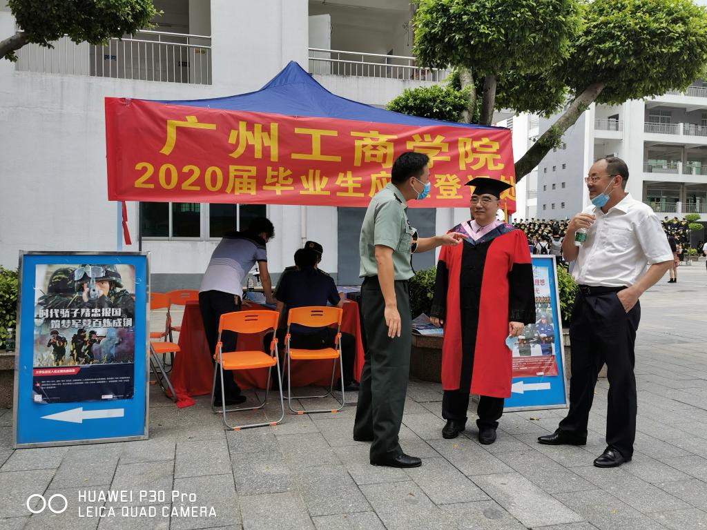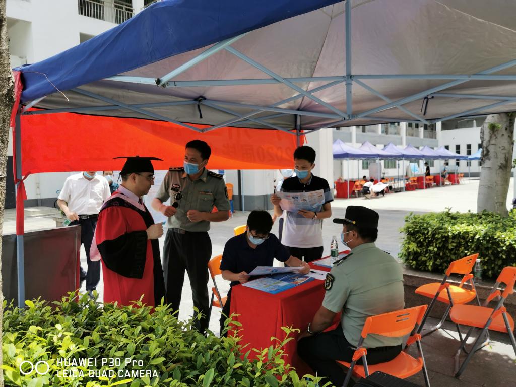 我院武装部在2020届毕业生返校举行毕业典礼之际,面对应届毕业生积极开展征兵宣传暨征兵登记活动。此次征兵宣传活动特邀了地方武装部具有丰富征兵经验的工作人员强力支援。制作了征兵宣传展示板,向大学生发放传单,给适龄大学生解读大学生应征入伍的政策优惠及相关待遇。