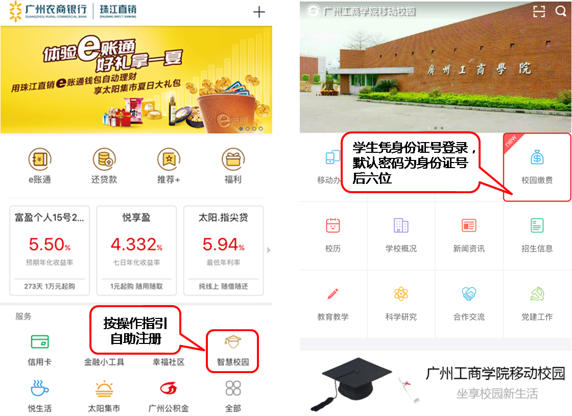 亲爱的同学们!为了方便大家缴纳学费,beat365委托广州农商银行为大家提供线上缴费服务,各位同学及家长可以下载广州农商银行【珠江直销APP】或beat365在线体育官网登录入口【移动校园APP】在线缴纳学费。