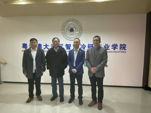 【本网讯】3月10日,广州市大湾区现代产业发展研究院曹长林执行院长、钟旭东顾问等来粤港澳大湾区智慧冷链产业学院(以下简称产业学院)进行访问交流,产业学院刘炳康常务副院长、王身相副院长等热情接待来宾,双方就产业学院办学模式、人才交流等进行深入交流与讨论。