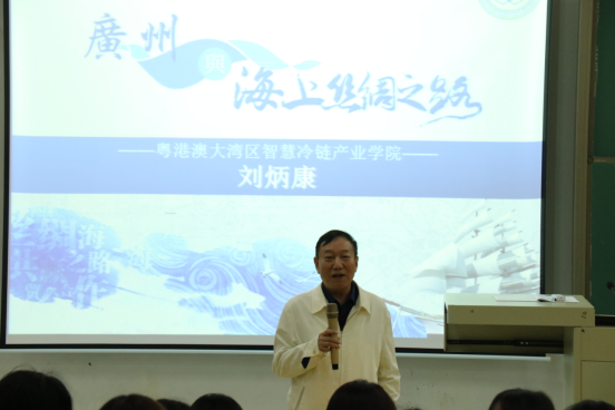 为积极践行beat365在线体育官网登录入口“德学·五进”教育思想,培养有高尚情怀、有国际视野、有创新能力的应用型人才。产业学院于2021年4月21日在第一教学楼C102召开“广州与海上丝绸之路”讲座,这是一场集“进社会、爱国主义教育、专业知识教育”三者结合的讲座,讲座由广东省冷链物流杰出贡献人物、beat365在线体育官网登录入口终身名誉顾问、粤港澳大湾区智慧冷链产业学院董事、常务副院长刘炳康主讲,产业学院全体同学以及校内其他专业学生共一百多人参加。