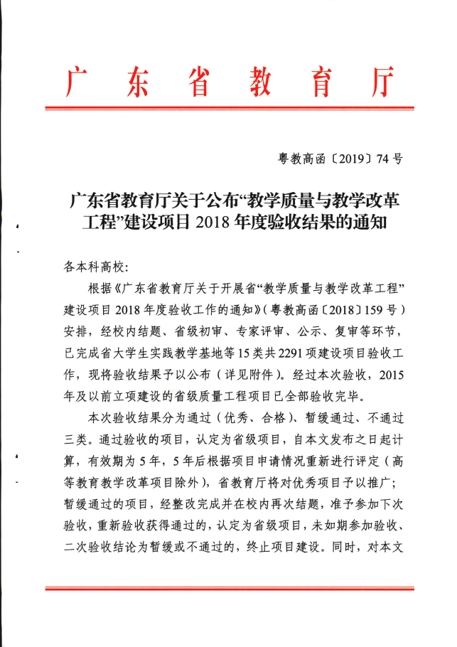 本次验收广东省专业综合改革试点项目175项,其中148项通过验收,18项验收暂缓通过,9项验收不通过。