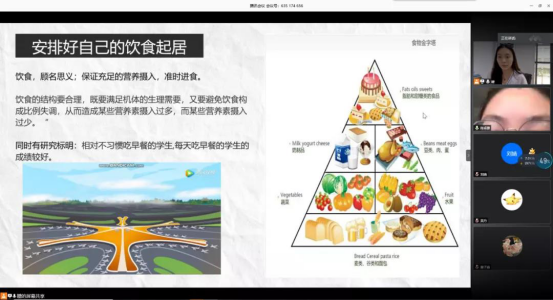 接着辅导员唐海恩揭示同学们长期在家的生活状态,呼吁同学们应该调整好生活状态,安排好自己的饮食起居,保证充足的锻炼以增强身体的免疫力,同时邀请赵京弘同学和陈卓雅同学分享他们最近的生活状态。