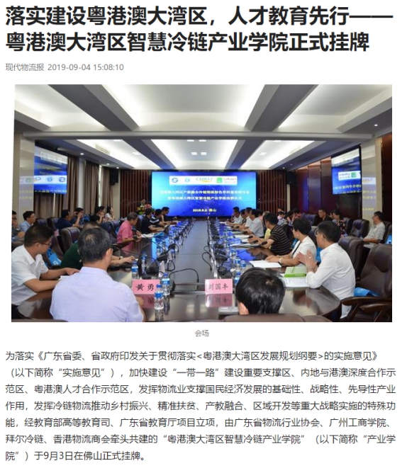 中国商报/中国商业网:粤港澳大湾区智慧冷链产业学院在广东佛山正式挂牌