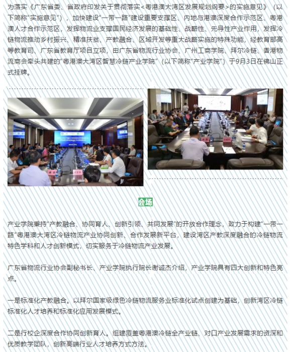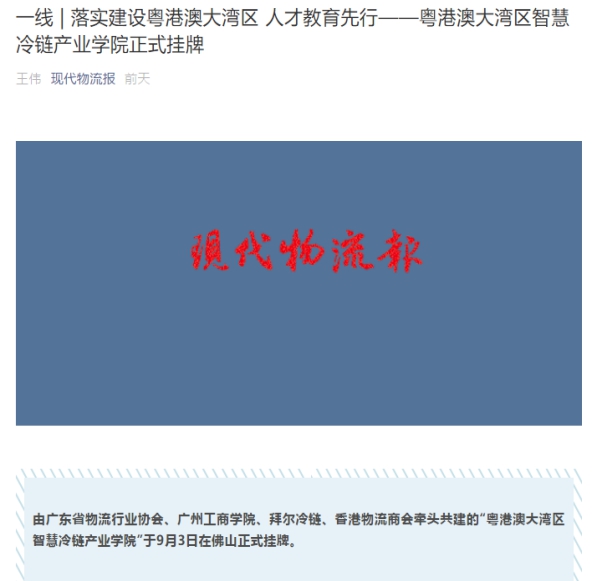 广州拜尔冷链公司报道粤港澳大湾区智慧冷链产业学院挂牌