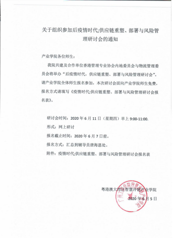 关于组织参加后疫情时代;供应链重塑、部署与风险管理研讨会的通知