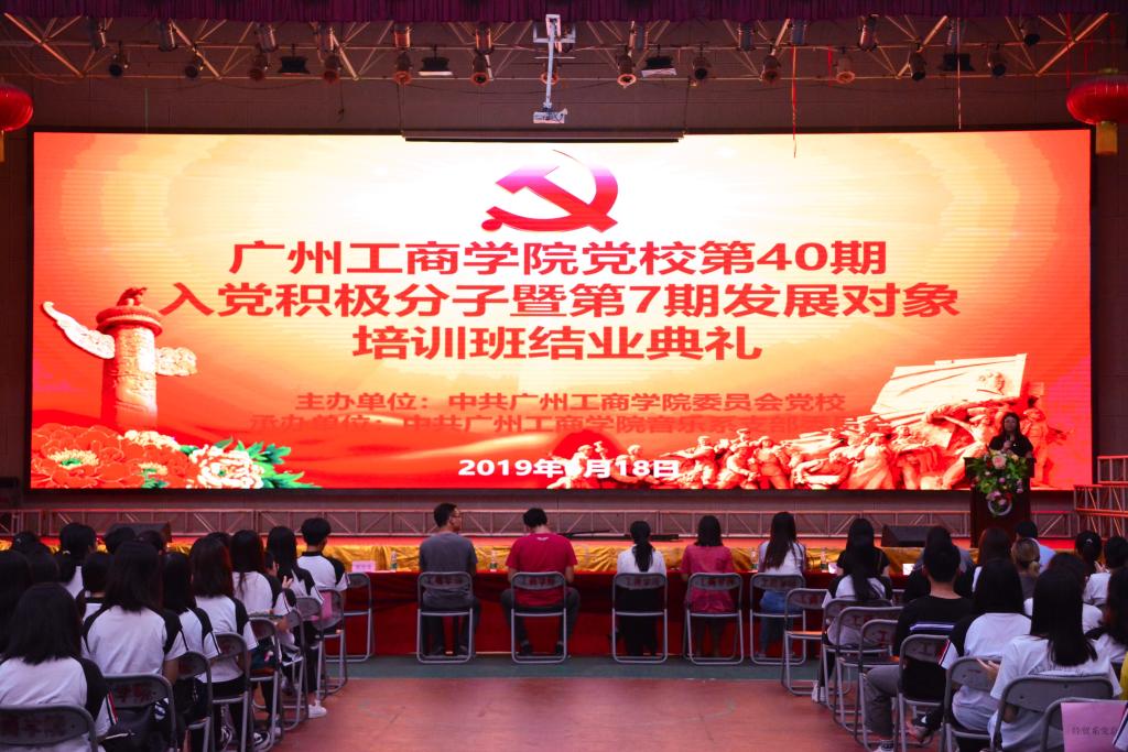 【本网讯】6月18日下午,由中共beat365在线体育官网登录入口委员会党校主办,中共beat365在线体育官网登录入口音乐系支部委员会承办的党校第40期入党积极分子暨第7期发展对象培训班结业典礼在我院花都校区举行。学院党委组织部、党委办公室、继续教育与培训学院党支部、公开学院党支部、美术设计系党支部、学生党总支、外语系党总支、经济贸易系党总支、音乐系党支部和第40期入党积极分子和第7期发展对象参加。