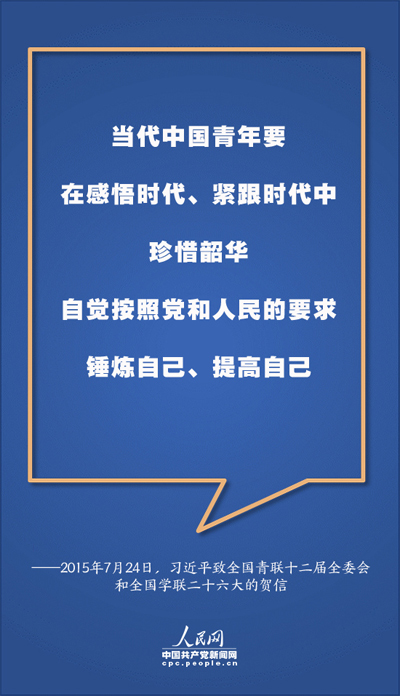 ——2015年7月24日,习近平致全国青联十二届全委会和全国学联二十六大的贺信