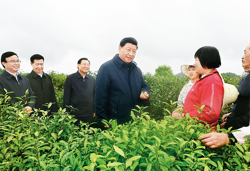 2020年4月20日至23日,中共中央总书记、国家主席、中央军委主席习近平在陕西考察。这是4月21日,习近平在安康市平利县老县镇蒋家坪村女娲凤凰茶业现代示范园区,同茶农们亲切交谈。