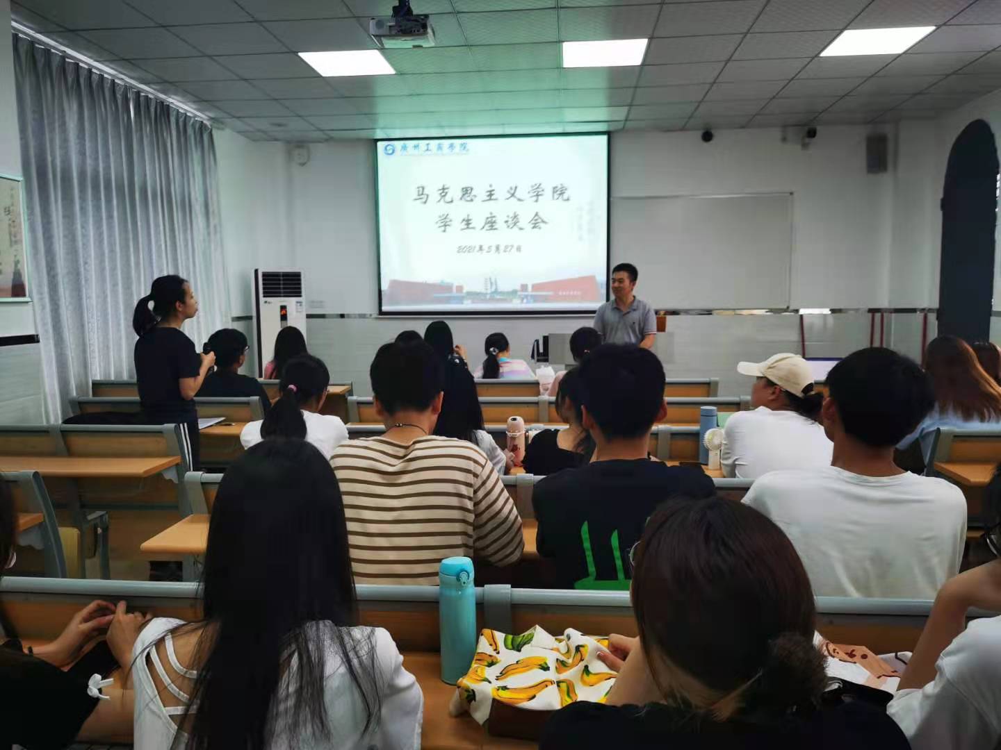 【本网讯】为贯彻落实beat365邝邦洪校长所提倡的“以德为行 以学为上”的教育理念,深入了解本学期思想政治理论课开设情况,听取学生对思想政治理论课的意见及建议,进一步加强和改进教学,5月27日,马克思主义学院在花都校区教学楼504召开了2020-2021学年度第二学期花都校区学生座谈会。马克思主义学院卢剑锋老师、郝建丽老师及40多名学生代表参加座谈交流。