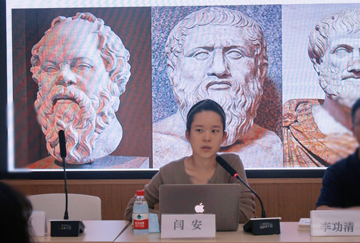 闫安老师就马克思主义哲学的主要内容本体论、认识论问题与苏格拉底哲学思想做了比较分析,指出其异同所在:其一,相同之处在于都确立了对事物认识的探讨方式(如何认识外部世界与知识)、反对智者学派的夸夸其谈;其二,不同之处在于对事物本质的认识。前者坚持物质本体论,后者反求诸己、要求通过审视自身内在的德性原则去探究外部事物规律。